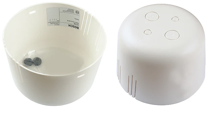 Back box for LC3 ceiling speakers, fully protects the loudspeaker from dust and dripping water, makes the unit vermin proof and prevents sound traveling via the ceiling cavity to adjacent areas, white RAL 9010.