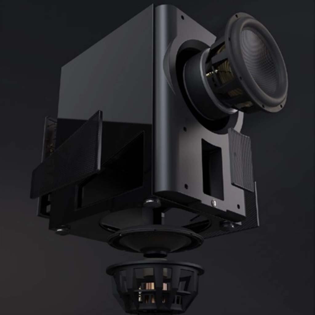 Starting with the tuning of the massive 60 mm peak linear excursion, spider compliance, and magnetic motor curve. The two woofers are then mounted on a massive 80 mm front baffle and operated in push-pull configuration with cancellation of second order harmonics to further reduce distortion every step of the way ensuring the best low frequency experience possible.