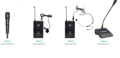 D5883 (UHF Wireless Microphone System+8 Headset Wireless Microphones+8 Waistband Transmitters), and D5884 (UHF Wireless Microphone System+8 Desktop Wireless Microphones).