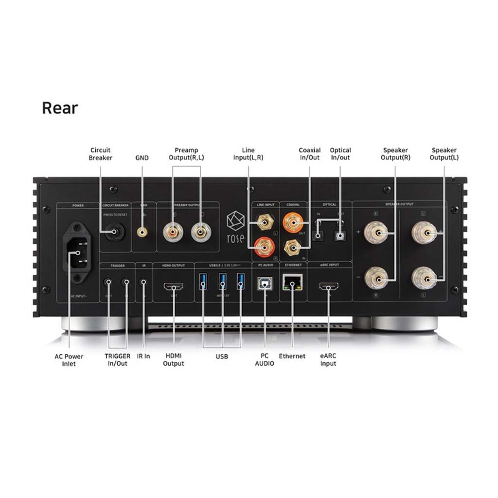 Please enjoy the powerful output of 250 W per channelwith Hi-Fi ROSE’s class-AD amplifier that maximizes operating speed and accuracy to achieve the perfect class-D amplifier structure.