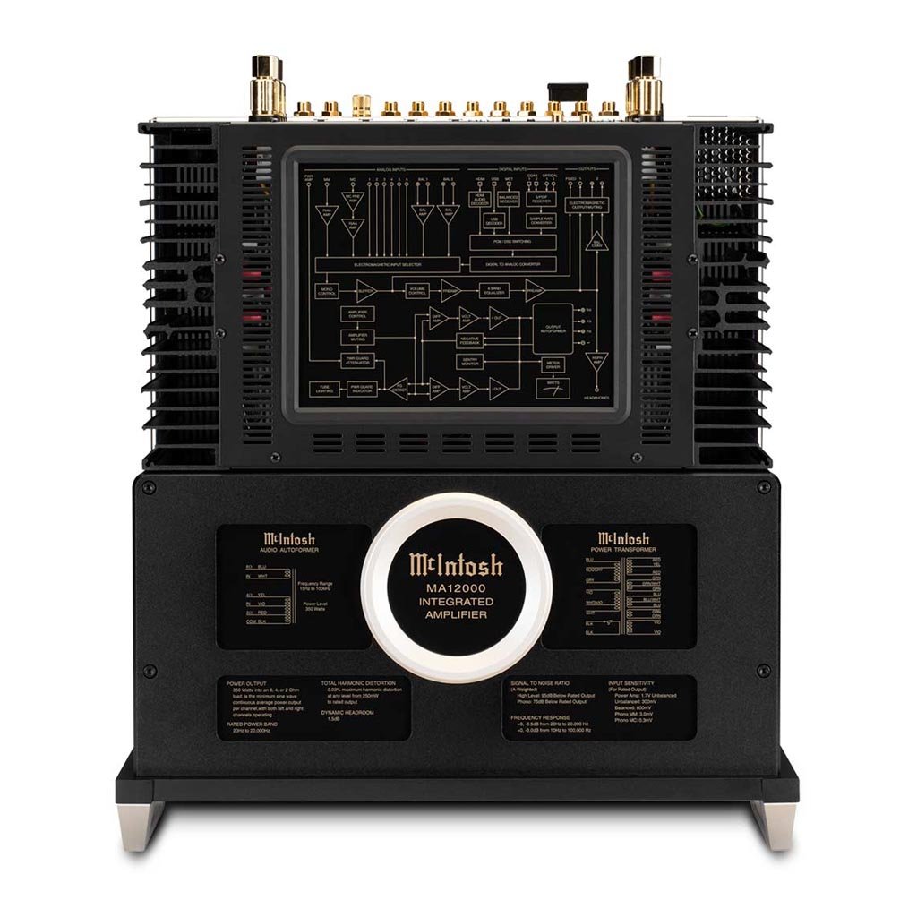 The McIntosh MA12000 is McIntoshās most powerful and fully-featured hybrid integrated amplifier, delivering an immense 350 Watts per channel into any speaker impedance via Autoformersā¢. Its unique design combines a vacuum tube preamplifier (4 x 12AX7A) for warm, natural sound with a solid-state power amplifier for robust dynamics.