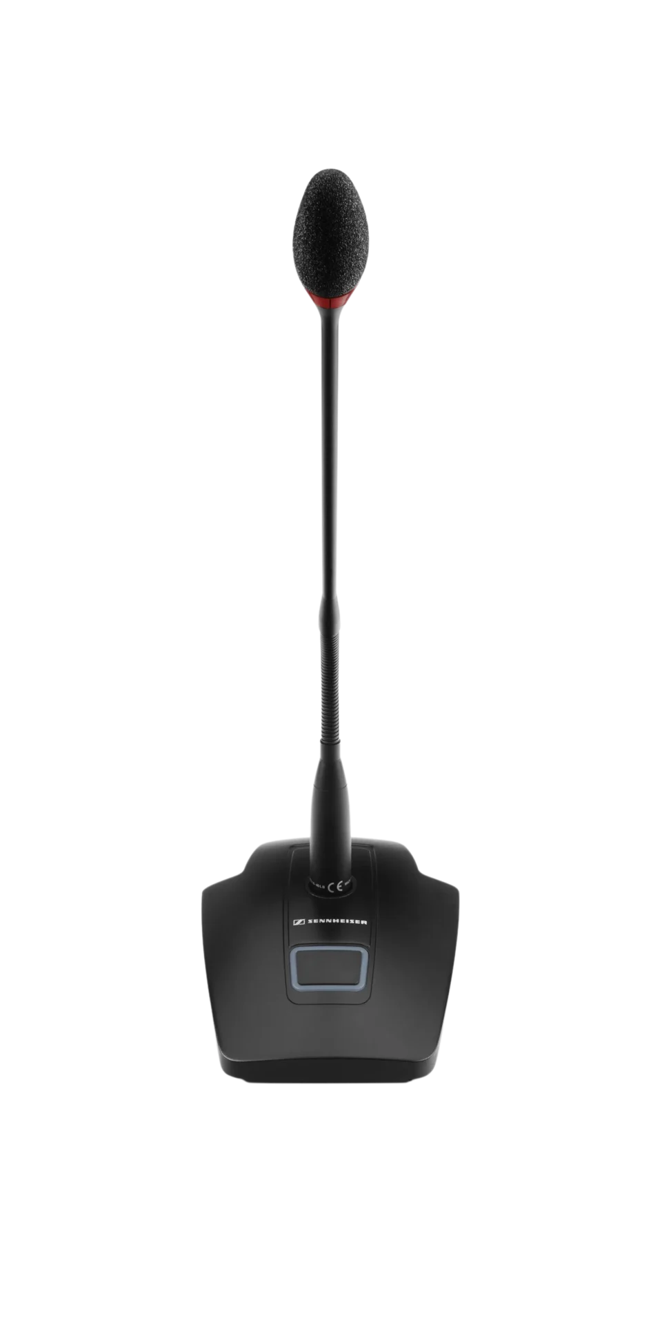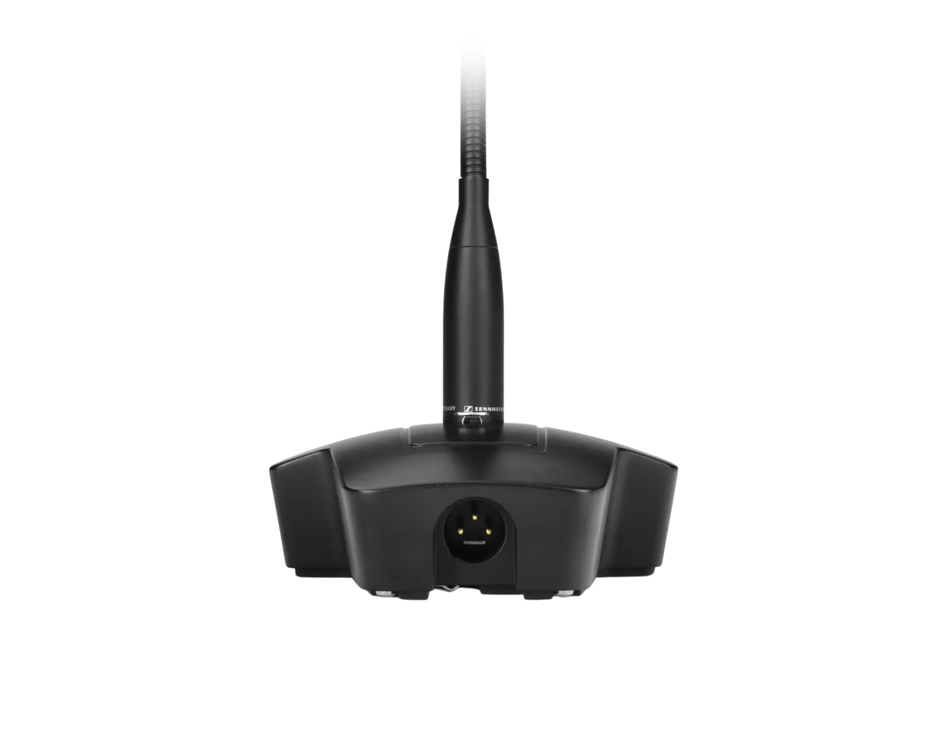 The MAT 153-S is a sturdy, wired table stand that provides a stable base for XLR-5 gooseneck microphones. It has a user-friendly microphone button with a two-color status display that provides quick visual feedback on whether the microphone is active or muted. The TTL logic output on the underside can be used to activate a camera or media control system. The model is available in black color.