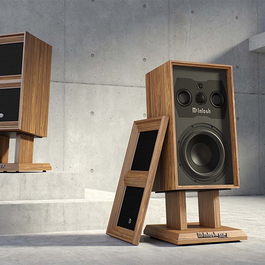 With a wide frequency response of 27Hz – 45kHz and 85dB sensitivity, it thrives with powerful amplifiers (100-600 Watts). Clad in real American Walnut veneers and resting on a matching stand, the ML1 Mk II’s design is as timeless as its rich, natural sound. A McIntosh black glass top plate and magnetic grille complete this iconic re-imagination, delivering an immersive listening experience.