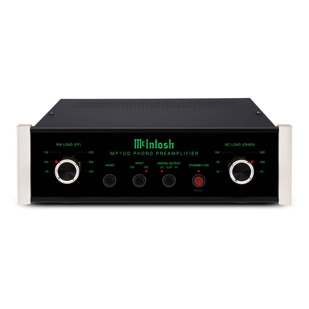 Like all McIntosh products, the MP100 is packed with features designed specifically for the vinyl lover including: Moving Coil and Moving Magnet inputs; Moving Coil and Moving Magnet adjustable loading (6 settings each); balanced and unbalanced analog outputs; optical, coax and USB digital outputs; and a Mono switch for when playing mono records to decrease noise and play the signal correctly. For pure analog use, the digital outputs can be completely disabled and powered down.