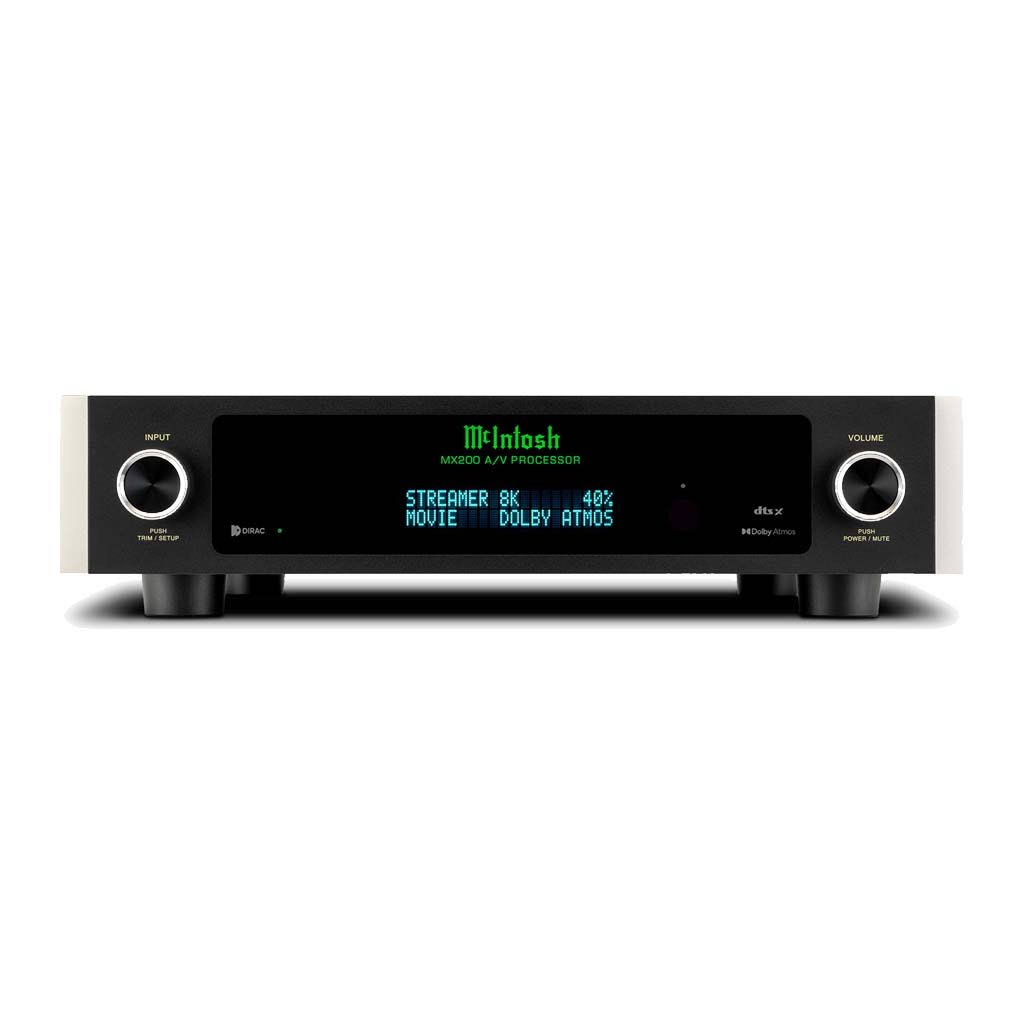The McIntosh MX200 A/V Processor is a high-performance control center for advanced home theater systems. It provides sophisticated 11.2 channel processing, supporting immersive audio formats like Dolby Atmos and DTS:X, with 11 balanced XLR outputs.