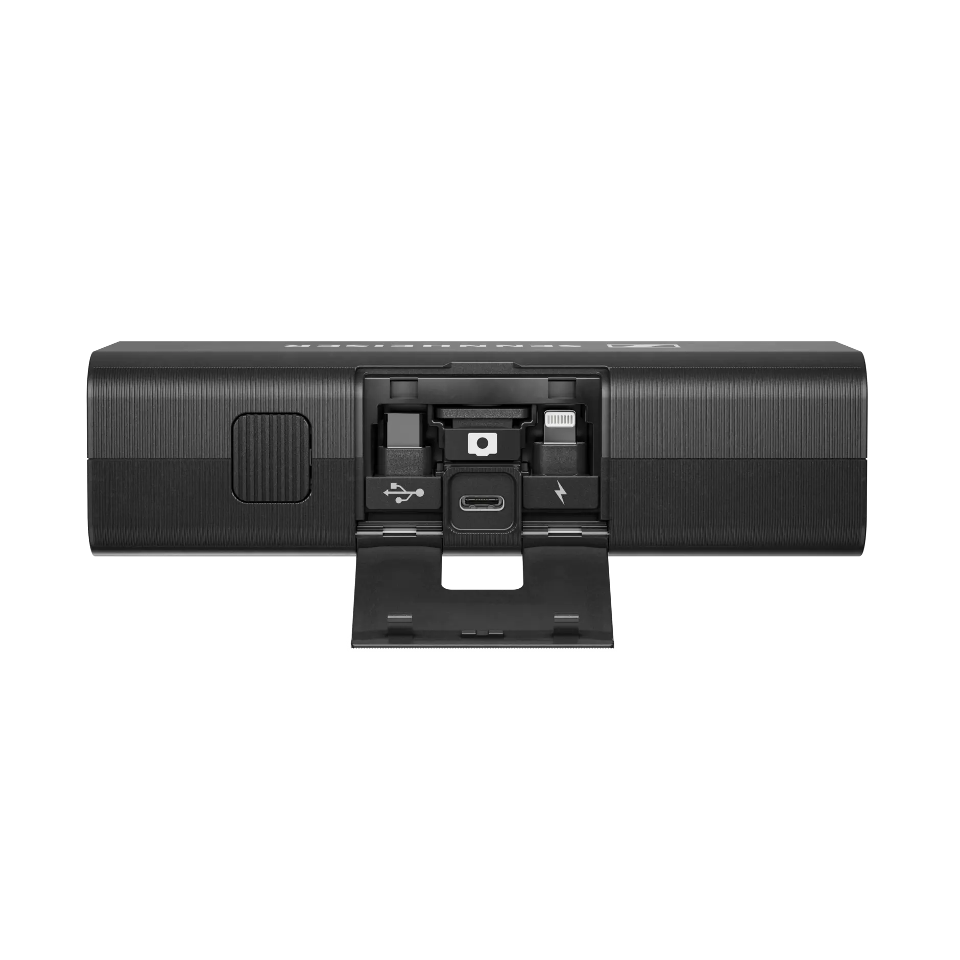 • Lockable external 3.5 mm TRS connector on each microphone for secure connection to optional Sennheiser lavalier mics