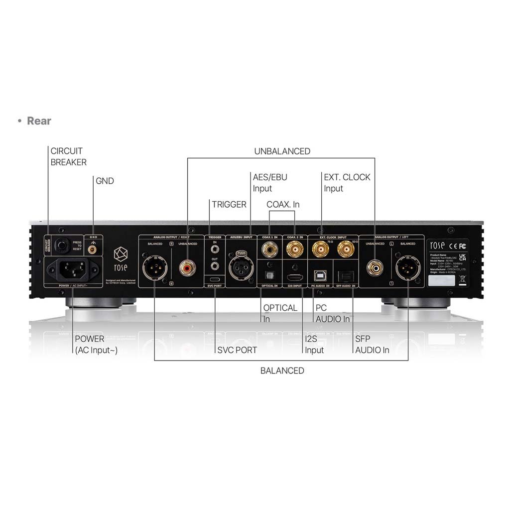 ROSE CIMâ„¢: The RD160’s ROSE CIM (Completely Isolated and Moduled) architecture physically separates the digital and analog stages. This unique design minimizes crosstalk and interference so each signal remains pure and clean. By isolating the left and right channels, stereo imaging and dynamic range are greatly improved.