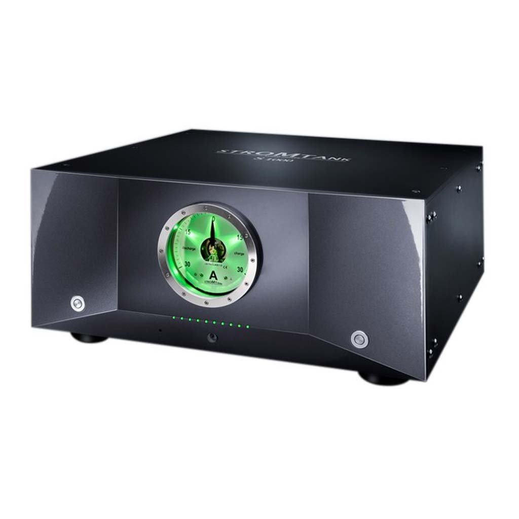 Stromtank offers unique opportunity to provide audio system with stable energy, completely disconnected from the electrical grid. This complete network separation works for hours and is electrically disconnected from the AC main circuits isolating the system from any AC surges, sags, noise, or radiations.
